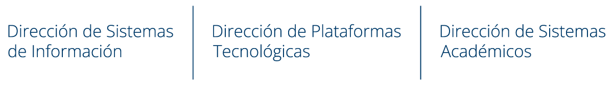 Finalmente, la Dirección de Sistemas Académicos se dedica a desarrollar herramientas y plataformas educativas que enriquezcan la experiencia de aprendizaje de nuestros estudiantes y faciliten la labor docente de nuestros profesores.